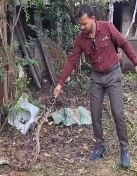 12 फीट लंबा अजगर साथ मिले 21अंडे, रेस्क्यू टीम ने सुरक्षित नदी में छोड़ा